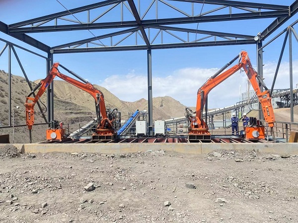 破拆機器人在地下礦山有多種用途,尤其在巷道狹小的金屬礦山,可用來進行破大塊、撬毛、巷道支護、二次破碎、鉆錨固孔和爆破孔等,有色金屬礦山和黃金礦山用破拆機器人破大塊、剪錨索、挖水溝、修理斜坡道和整修變形巷道等。還可以用作溜井格篩旁邊的固定破碎站,也可作為窄礦脈的礦石回采和扒礦。 豎井開拓、巷道修整和掘進也是破拆機器人的常用場所,還可輔助支護和噴漿。此類產(chǎn)品具有礦用產(chǎn)品安全標志證書。